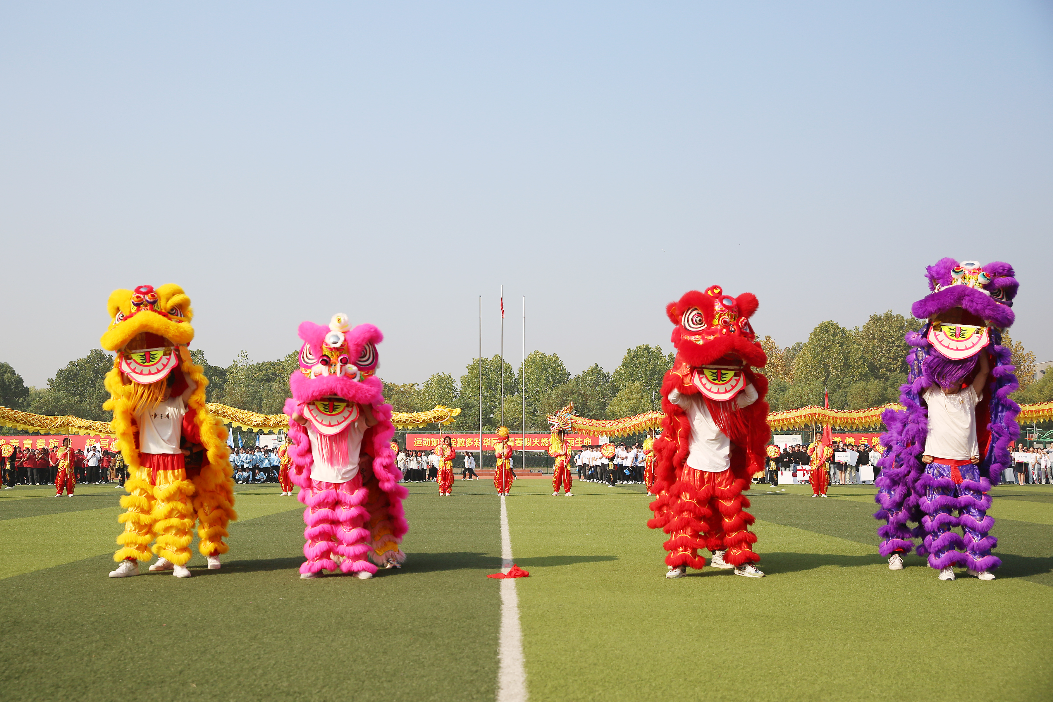 绿茵赛场,青春飞扬。鲜艳的国旗延续着炎黄血脉,伴随着激情澎湃的运动员进行曲,气宇轩昂的护旗队最先入场。国旗、校旗和会旗引领着新华园学子团结拼搏,勇创佳绩,军鼓仪仗队用慷慨响亮的鼓声“击发”着学子的青春与热血。