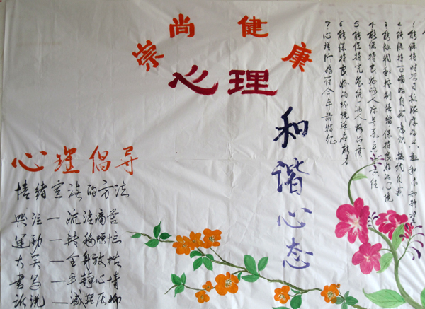 为了普及心理健康知识,进行心理健康教育,培养学生坚韧的品格和良好的心理素质,5月12日中午,土木与工业工程学院举办了第一届“以“关爱他人、关爱学校、关爱自己、建设和谐社会、和谐校园、和谐心灵”为主题的心理健康知识板报展。